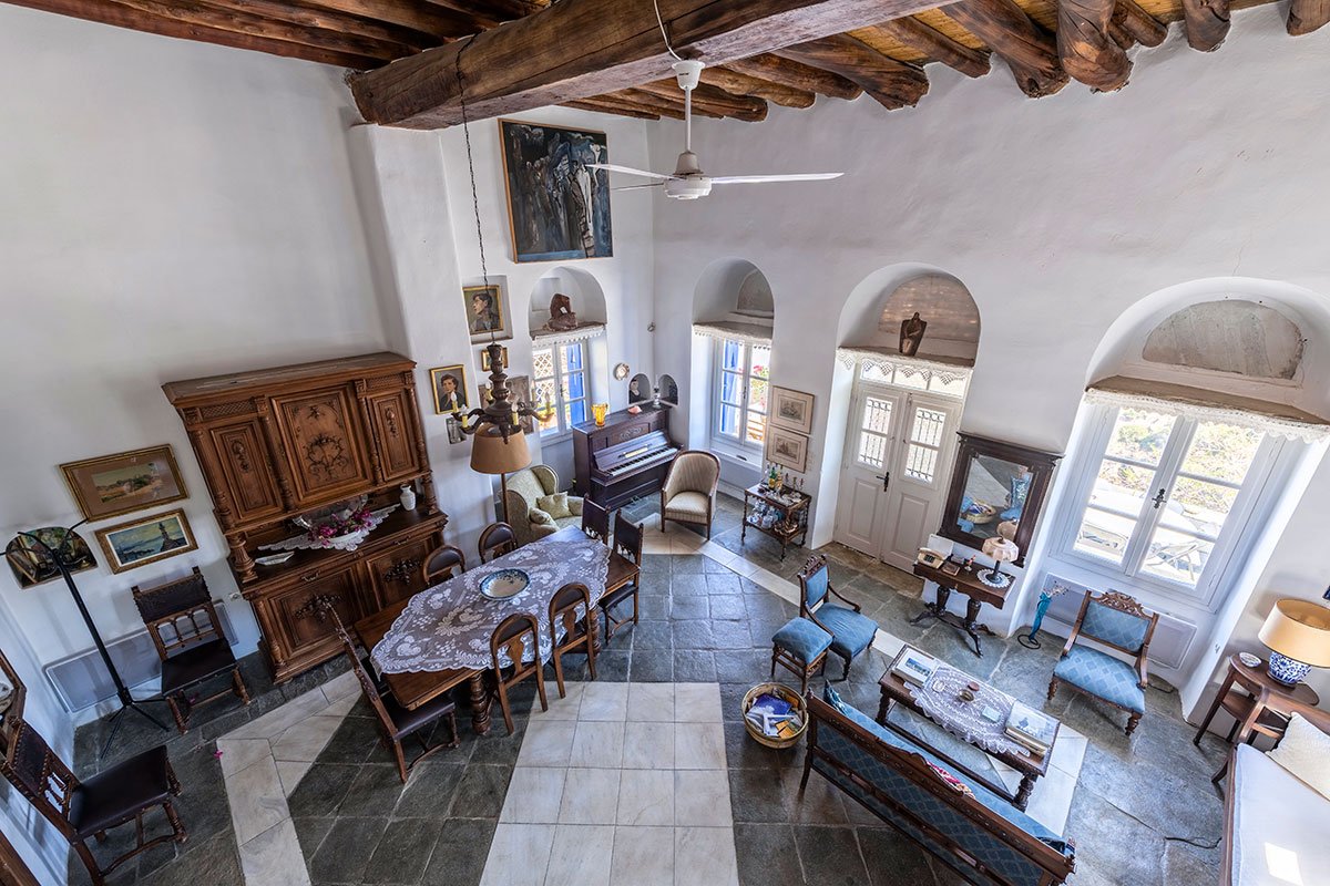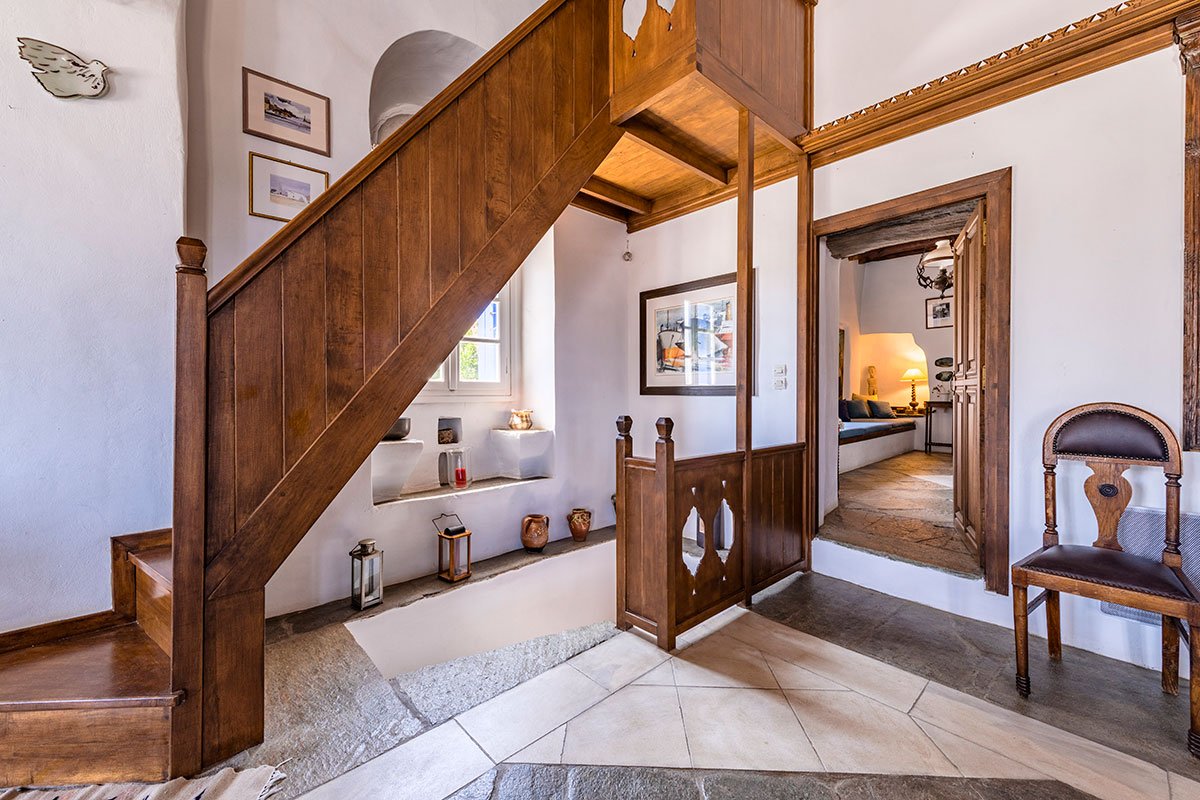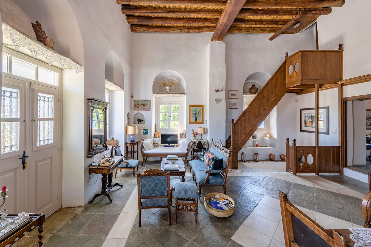 Δεύτερο επίπεδο, σαλόνι και η μεγάλη σκάλα προς τα υπνοδωμάτια του τρίτου επιπέδου.