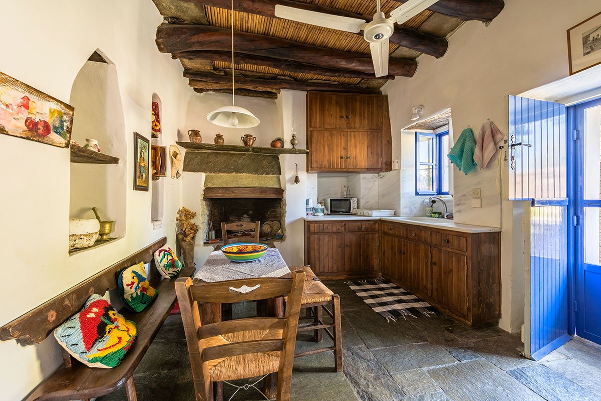 Δεύτερο επίπεδο, κουζίνα και παλαιό τζάκι.